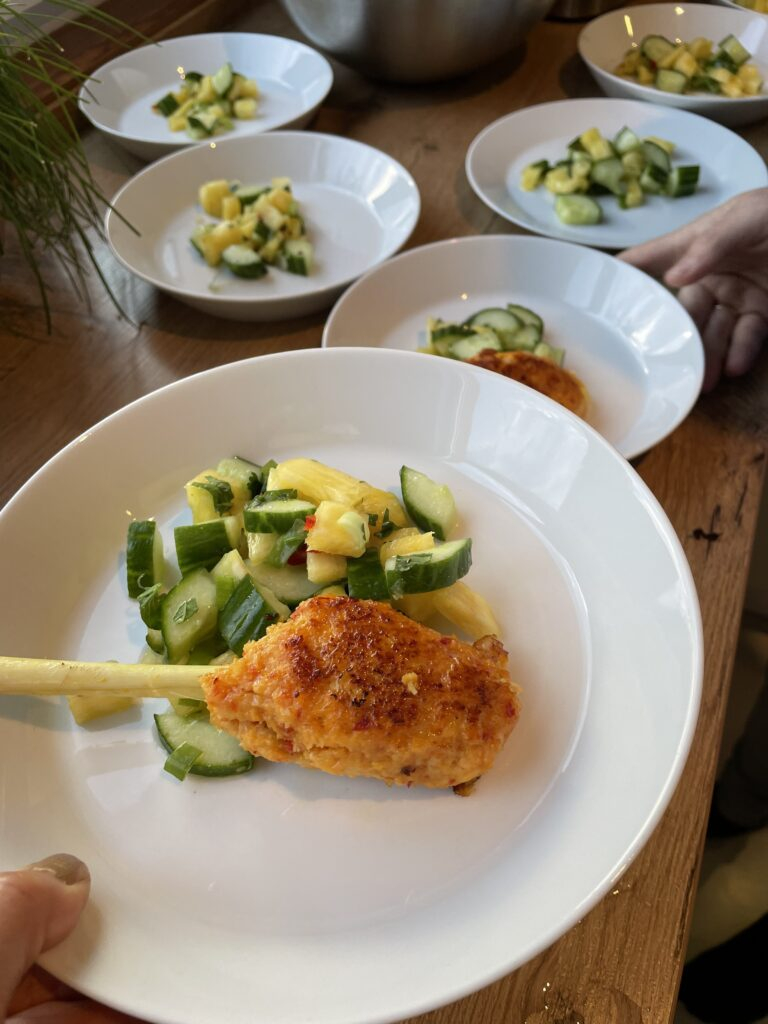 *Ik kom bij jou thuis. Kleine of grote keuken, het maakt niks uit. Als er maar een eettafel is waar iedereen aan kan eten en snijden. Tot maximaal 12 gasten of wat past bij jou in huis en aan de tafel. Ik neem mijn spullen mee + wat lekkere hapjes om tijdens het koken van te kunnen snoepen. Voordeel, je betaalt niet voor de locatie 😉
